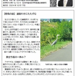 【野鳥の話】 道路わきにたたずむ 私たちが借りしている事務所が、大川町16丁目にあるのですが、その付近には旧登川が流れており、川沿いの道を下っていくと、中通2号線に出ます。 むかしは砂利道だったのですが、数年前に舗装され、道は狭いですが走りやすくなりました。 ...